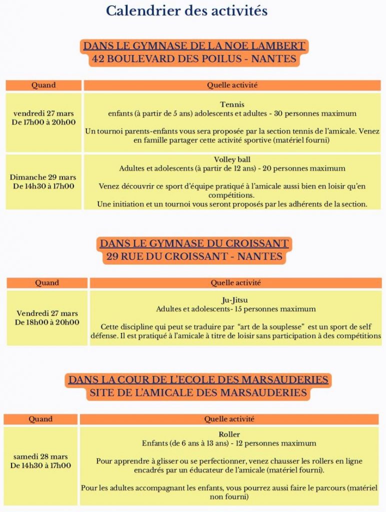 Les activités seront animées par des éducateurs et des bénévoles de l’Amicale.